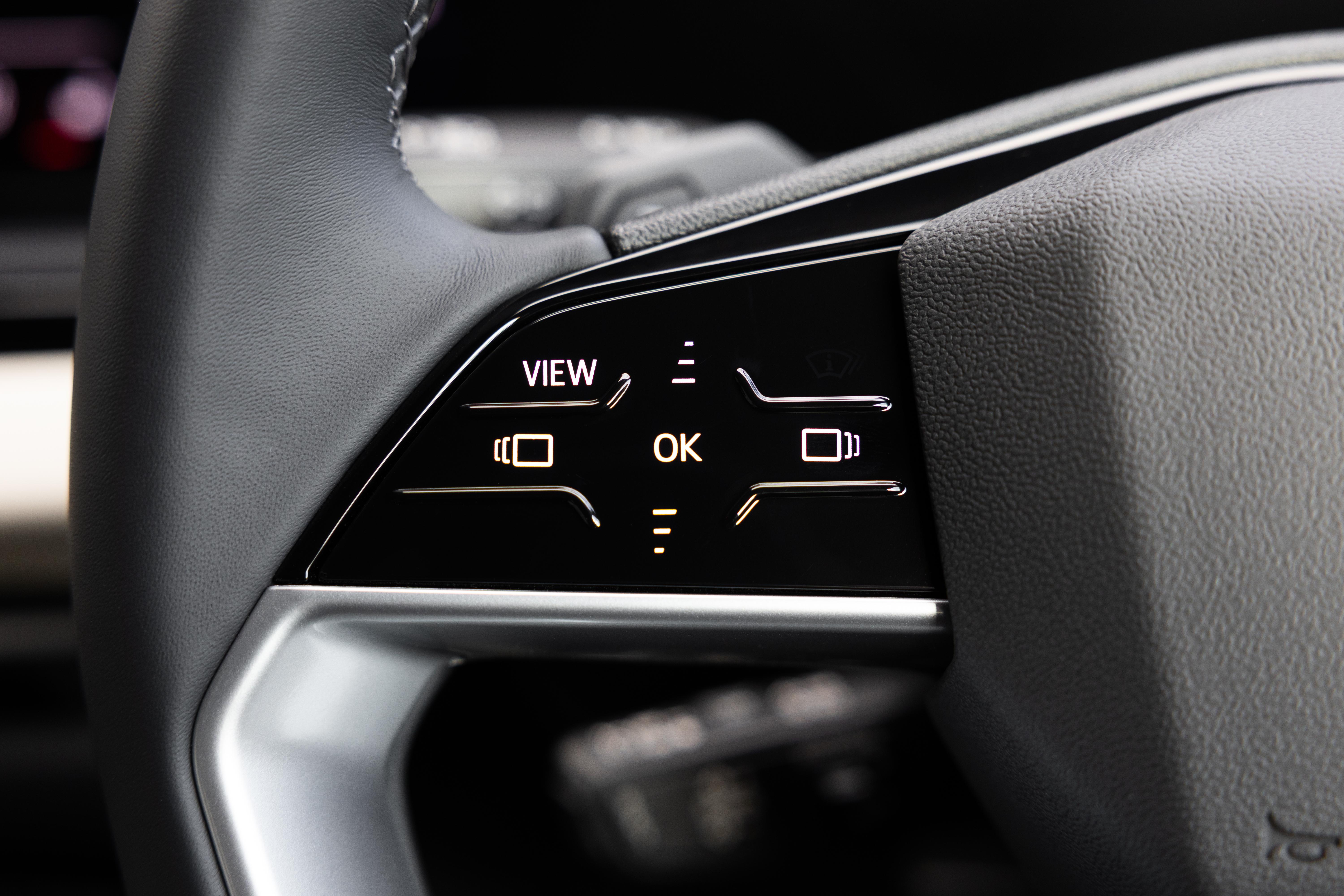 The steering wheel controls are touch-capacitive, so you can awkwardly slide your thumb across, for example, the volume controls, or press the buttons and hear their unsatisfying plasticky click. Thankfully, Audi has confirmed it’ll return slide wheels to the A5’s tiller.