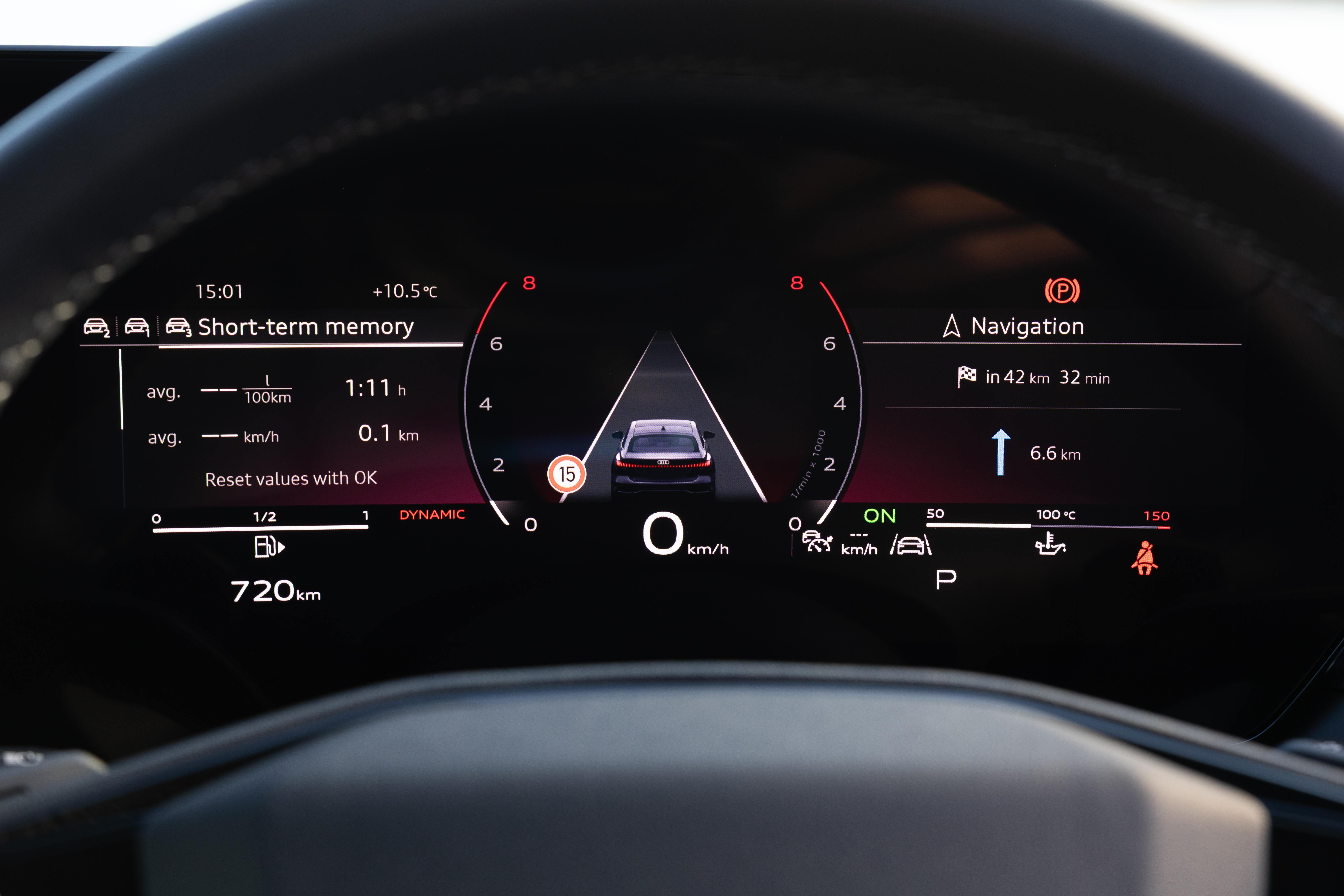 I spent far too long trying to find a full-screen map view in the digital instrument cluster, long a common Audi feature. There isn’t one, though in terms of navigation you can see your turn-by-turn instructions here and in the head-up display. If you use Apple CarPlay, a map view will appear within the cluster, but no such luck for those of us who use Android Auto.
