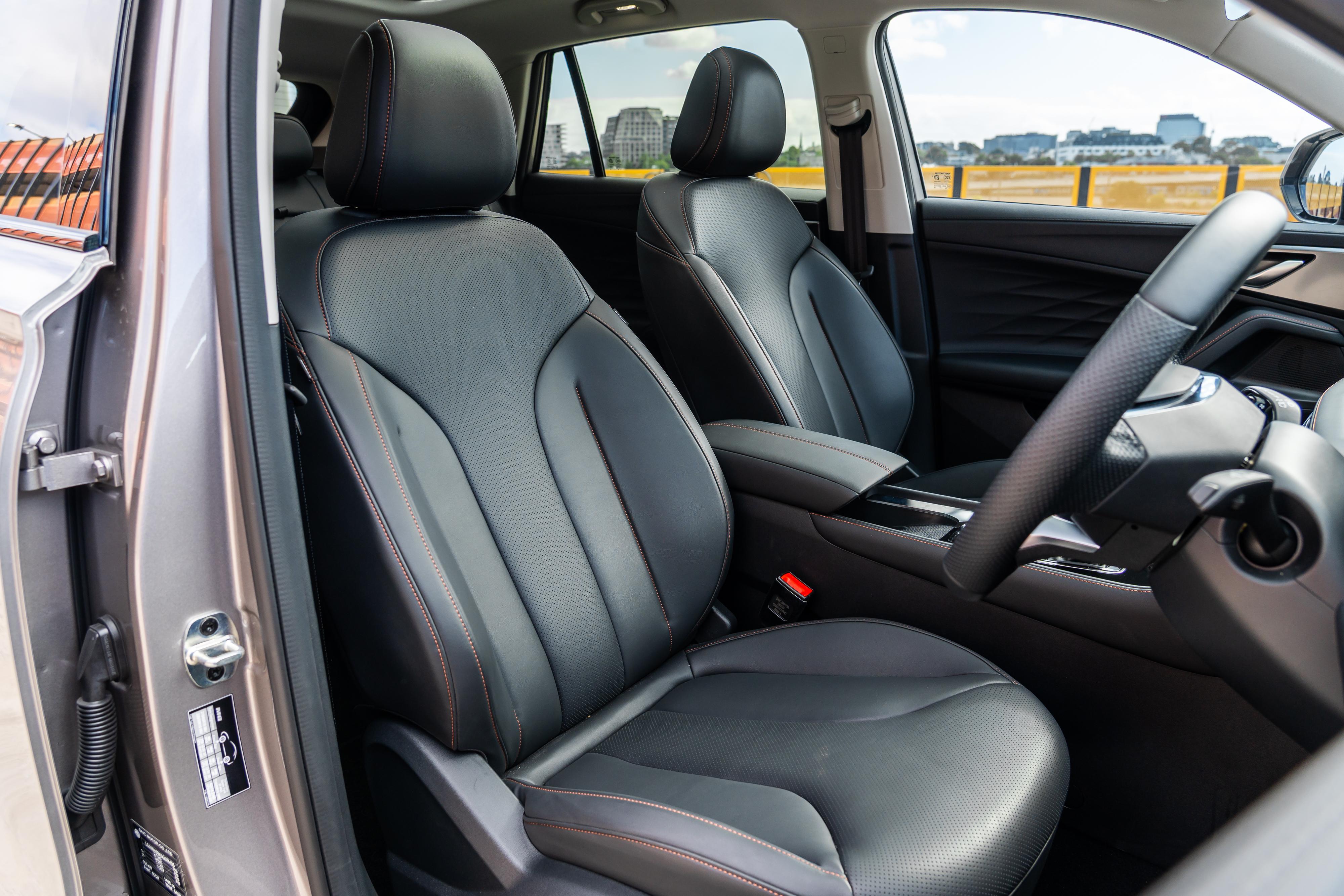 Contrast stitching and perforated leatherette upholstery continue throughout the cabin, on the seats and on the door grab handle trims, which is why it’s puzzling that MG went for moulded stitch-look stuff on the door tops – which looks like it came out of a Toyota HiLux.