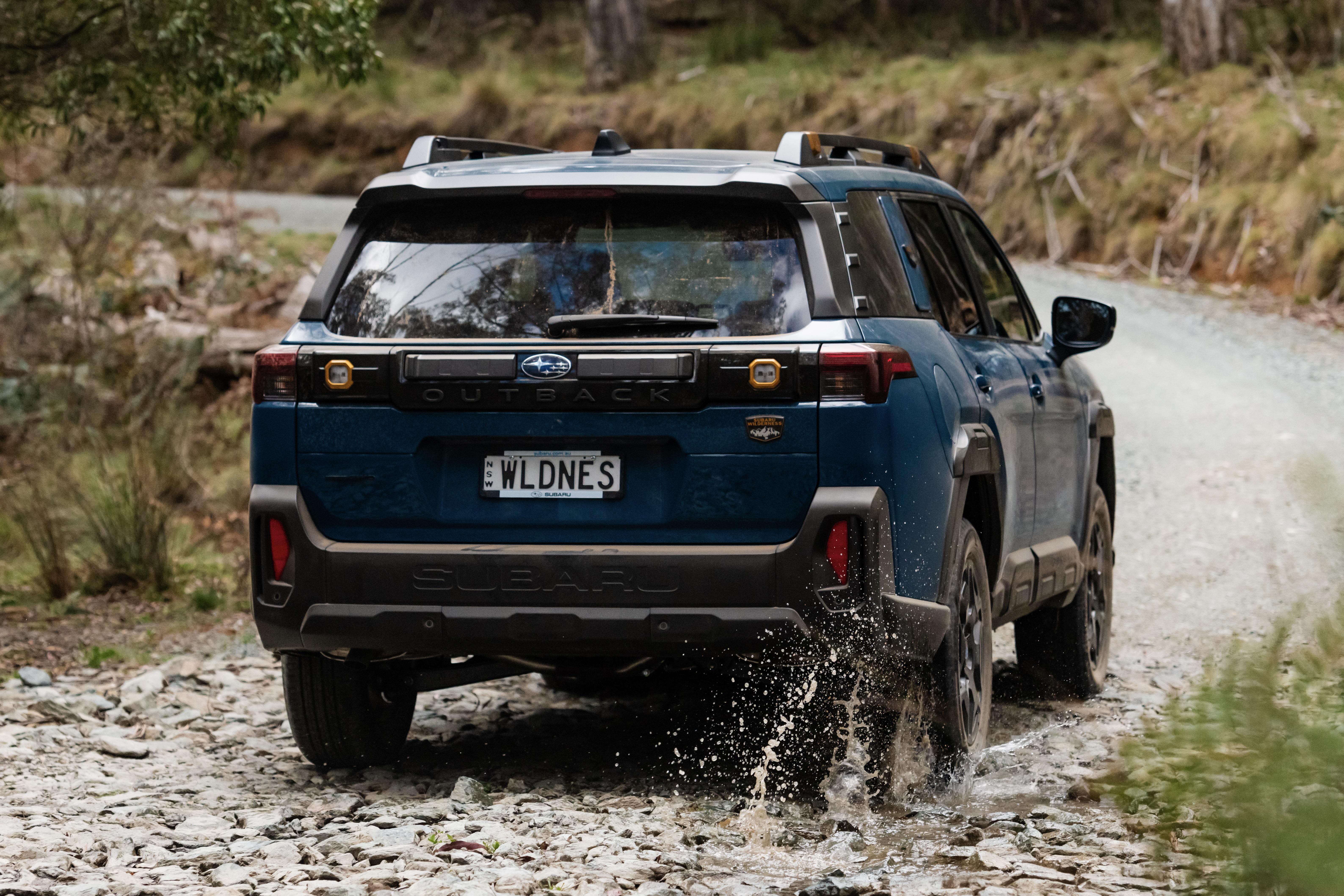 Wilderness enhancements include a turbocharged engine with more power and torque than the outgoing Outback XT, water-repellent upholstery, adaptive suspension (similar in design to the WRX tS), a 20mm lift in ride height (up to 240mm), 2100kg of braked towing capacity, and unique exterior styling.