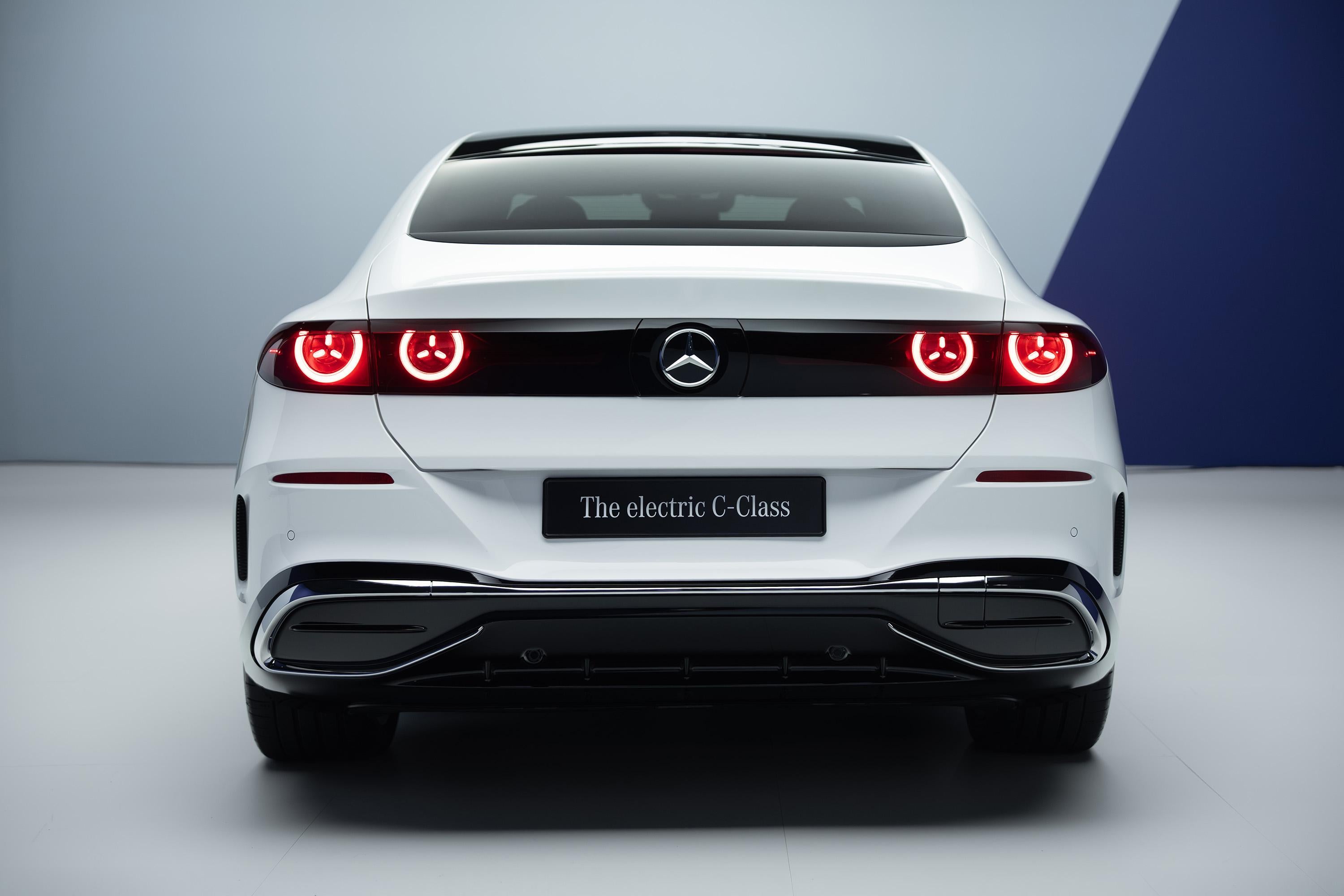 Underneath, the electric C-Class features four-link front suspension and a multi-link rear setup. Optional Airmatic air suspension – which lowers the ride height in Sport mode – is paired with rear-axle steering.