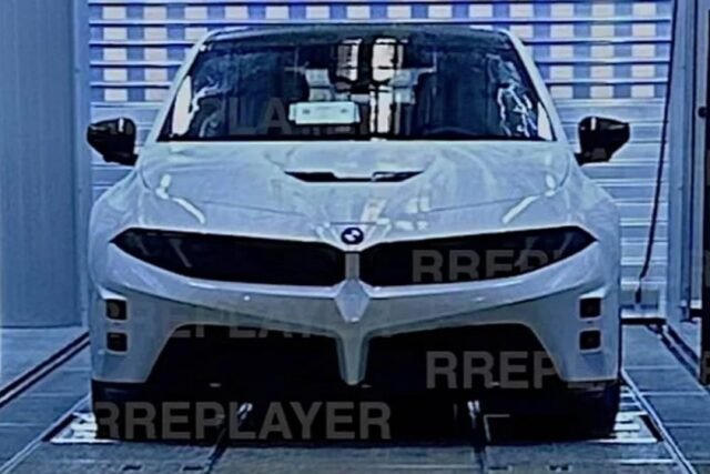 Due in showrooms in 2027, the electric M3 can be seen in photos shared on the Bimmerpost forums, revealing an aggressive prow with extended kidney grille housings incorporating the headlights, as well as flared guards and a prominent bonnet scoop.