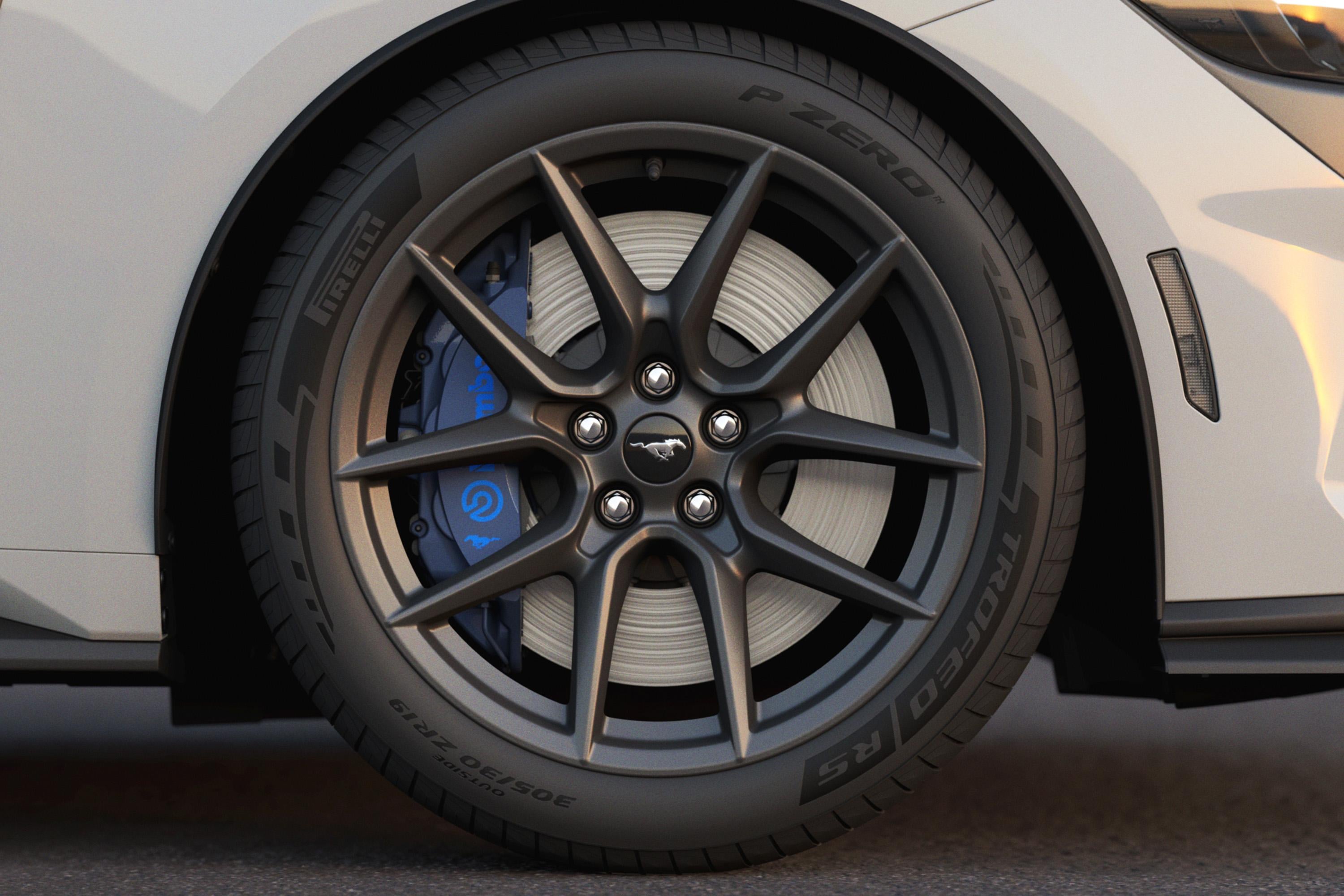 It also gains black 19-inch alloy wheels with wider 10.5-inch front and 11-inch rear fitments, wrapped in 305/30R19 and 315/30R19 Pirelli P Zero Trofeo RS tyres.