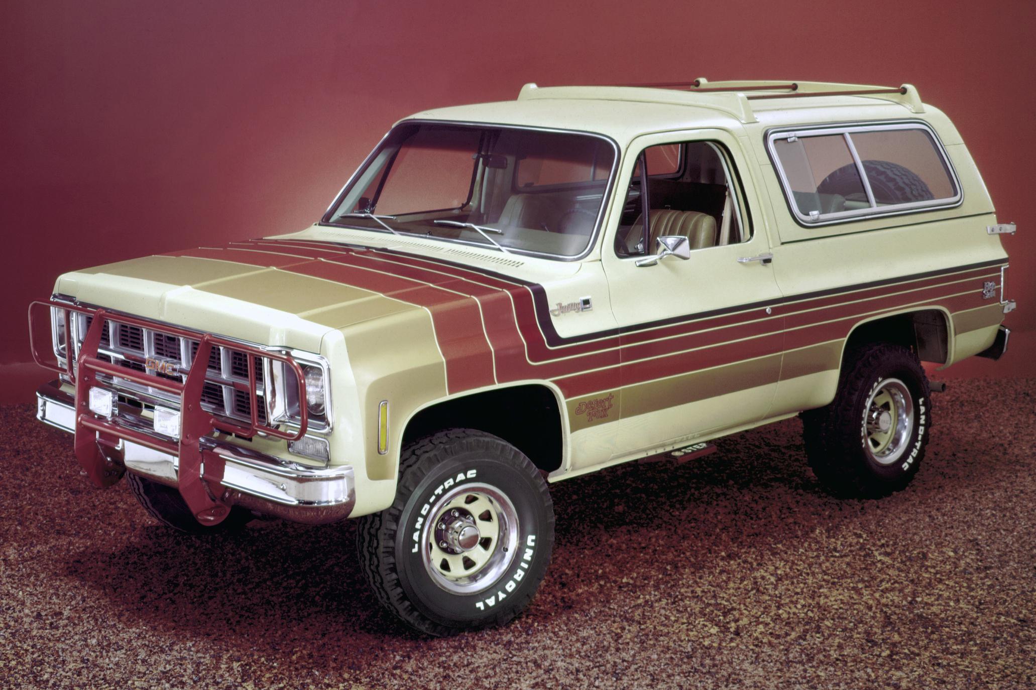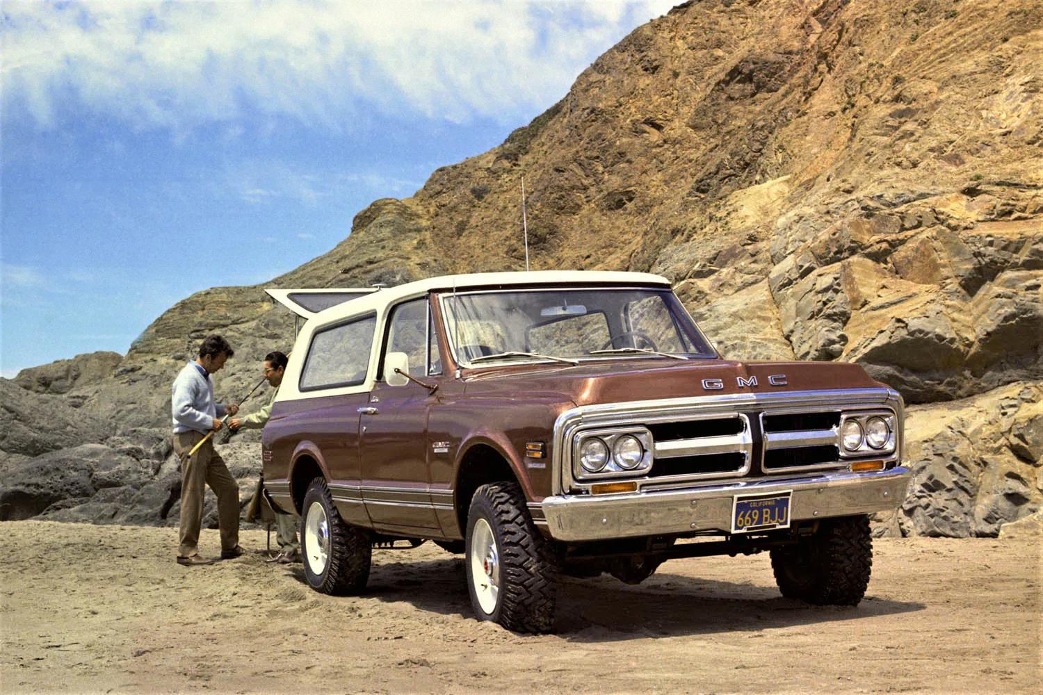 The Jimmy nameplate debuted for 1969 as a rebadged version of the Chevrolet K5 Blazer, a rugged two-door off-roader which battled the Bronco and which was available with a soft-top or a removable hard top.