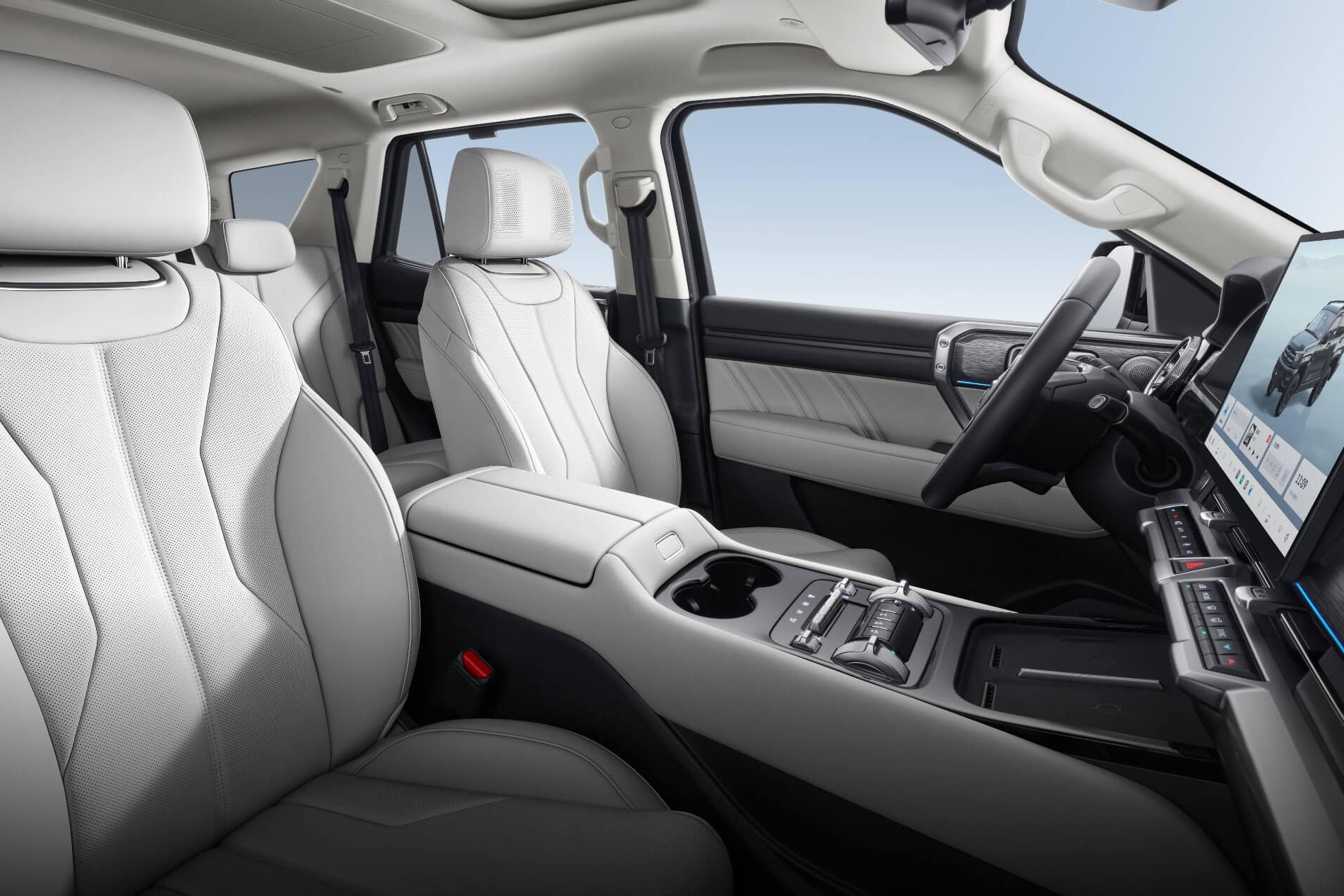 Some Tank 400s also come with a 15.6-inch rear entertainment screen that folds out of the roof, replacing the panoramic sunroof, plus a night vision system.