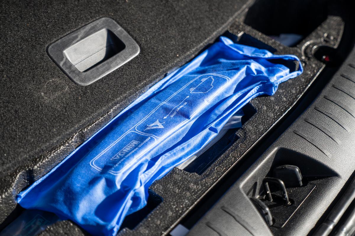 If there’s space, these can be housed with the spare tyre or together in a small plastic container.